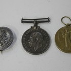A 1914-18 British War Medal and a 1914-19 Victory Medal to '43115 Pte. F.Harvey. Suff.R' and a First World War period silver discharge badge for services rendered, detailed 'RAF 4059'.