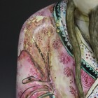 A Chinese famille rose enamelled porcelain figure of an immortal, 20th Century, modelled standing wearing a colourful robe on a rectangular base, height approx 50cm (minor restoration and faults).