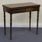 A George IV mahogany card table, the hinged top raised on turned legs, width approx 81cm.