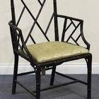 A 19th Century Chinese Chippendale style ebonized and gilt decorated elbow chair with faux bamboo back, arms and supports, height approx 78cm, width approx 65cm.