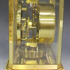 A Jaeger-LeCoultre Atmos mantel timepiece with perpetual gilt brass movement, detailed '207193', the circular white chapter ring with gilt metal Arabic numerals and hour batons, and inscribed 'Jaeger LeCoultre Atmos', the gilt brass and glazed case with canted corners, on a plinth base, height 23.5cm.