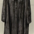 A mid-20th century brown fur three-quarter length coat, the patterned lining with embroidered maker's mark 'Deanfield London', length 117cm.