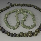 Two Islamic glass bead necklaces, one of irregular compressed spherical beads with roundel decoration, the other with irregular semi-translucent form.