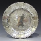 A George VI silver strawberry dish of lobed circular form, the wavy rim engraved with a shell border, the interior similarly decorated with shell and foliate scroll panels within a geometric border, London 1941 by Wakely & Wheeler, diameter 21.5cm.