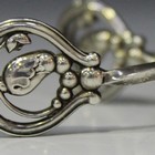 A pair of Georg Jensen sterling Blossom design sugar nips, circa 1933-1944, length 9cm, together with another pair of Georg Jensen sterling sugar nips, with wreath handles, circa 1915-1930, impressed marks, length 10cm.