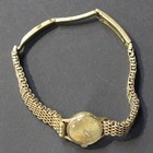 An Omega 9ct gold circular cased lady's wristwatch, the signed movement numbered '18774576', the signed circular dial with gilt baton shaped numerals and tapering gilt hands, the case back interior numbered '950' above '199852', on an associated 9ct gold interwoven link bracelet with a fold-over clasp, case diameter 1.9cm.