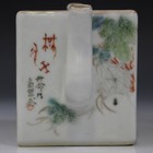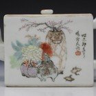A Chinese porcelain rectangular teapot and cover, probably Republic period, the sides painted with a scene of three figures and two donkeys in landscape, opposing precious vessels flanked by lines of black text and red seals, length 17.5cm, together with a small collection of Chinese porcelain, including three blue and white baluster vases and covers and two blue and white teapots and covers (some faults).