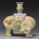 A Chinese style porcelain candleholder figure of an elephant, 20th century, modelled standing with saddlecloth and sconce surmount, height 18.5cm.