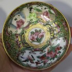 A Chinese Canton famille rose porcelain rectangular tray, mid-19th century, painted with panels of figures, birds and flowers against a gilt ground filled with scrolling lotus, length 25cm, together with a small group of similar wares, comprising two coffee cups and saucers, a teapot and cover and a two-handled pot and cover (some faults).