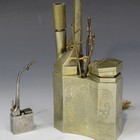 A Chinese plated water pipe, the body finely engraved with two maidens and flowers opposing lines of various script, height 45cm, together with a smaller Chinese silver water pipe, engraved with bamboo, height 8.7cm.