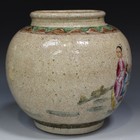 A Chinese Swatow style famille rose crackle glazed porcelain jar, the globular body painted with a figural scene, height 23cm.