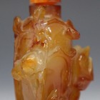 A Chinese agate snuff bottle and stopper, 20th century, carved in relief with birds and blossoming branches, height 8.5cm.