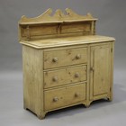 An early 20th century stripped pine side cabinet, the shelf back above three drawers and a cupboard, on bracket feet, height 135cm, width 126cm, depth 56cm.