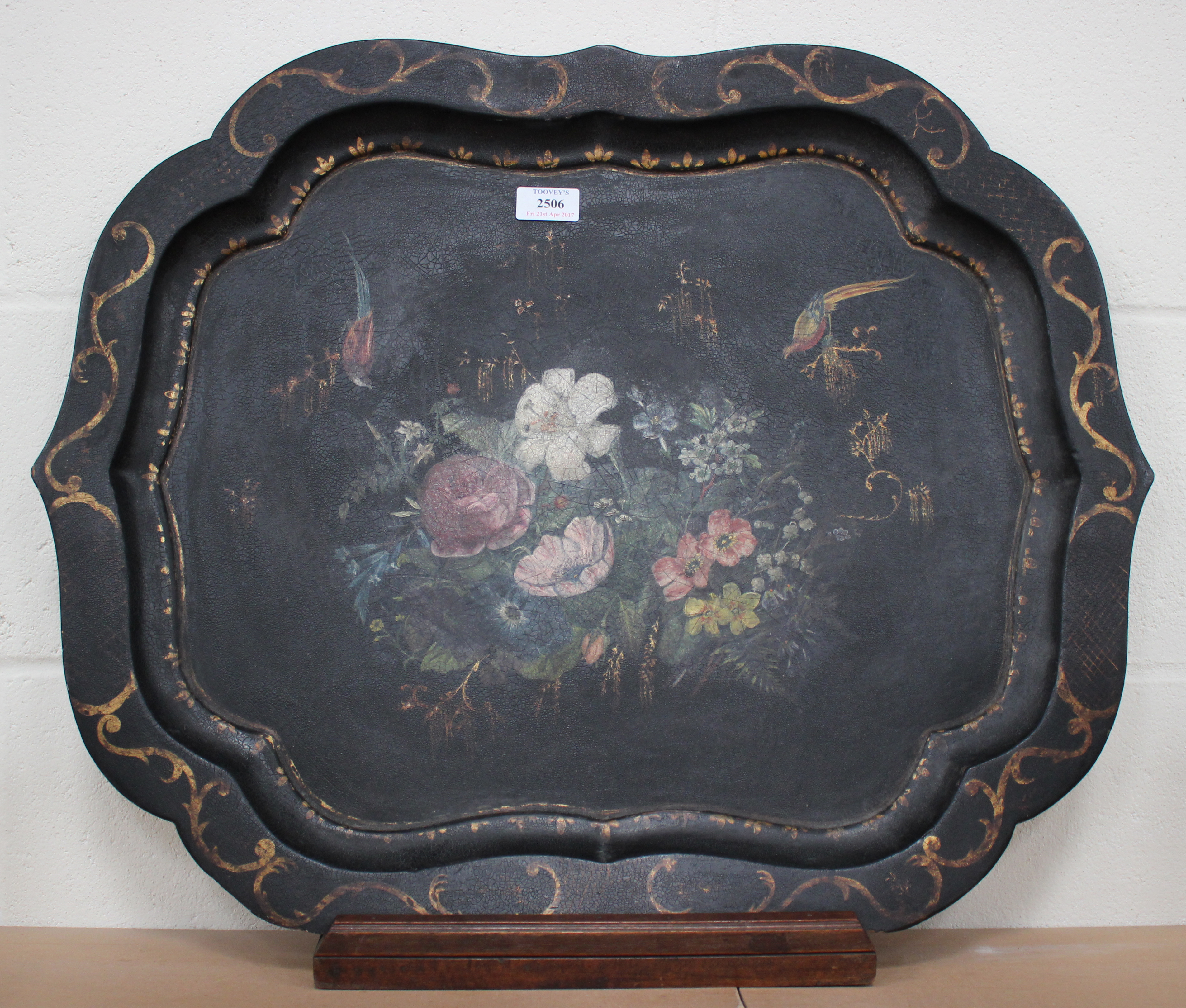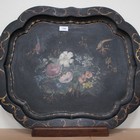 A Victorian papier-mâché tray, decorated with an exotic bird amongst foliage, width 66cm.