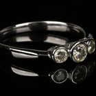 A 9ct white gold and diamond three stone ring, collet set with a row of circular cut diamonds, ring size approx N1/2.