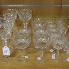 A set of six hock glasses with lattice cut decoration, a set of six champagne bowls, cut with roundel and floral medallion decoration, five similarly decorated port glasses and a matching sherry, together with a small group of other glasses.