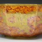 A Wedgwood lustre octagonal bowl, the blue mottled interior gilt decorated with Celestial Dragons and Sacred Pearl with Flames design, the orange mottled exterior with matching decoration, gilt printed Portland vase mark and painted 'Z4825' to base, width 23cm, together with a Royal Worcester bone china figure 'Monday's Child is Fair of Face', printed factory mark including '3519' to base.