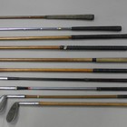 A group of nine mallet headed golf putters, including a Harry Clee & Co Braid-Mills, a Standard Golf Co. Mills' patent medium lie model, a Cassidy's Vee putter and a Dellands Dynamic, together with a group of other various golf clubs. Provenance: from the estate of the late Alistair Morris.