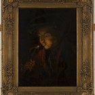 Attributed to William Shipley - Young Man blowing on a Fire Stick, late 18th century oil on board, 49cm x 36.5cm, within a gilt composition frame.
