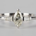An 18ct white gold and diamond ring, mounted with the principal marquise diamond between tapered baguette diamond single stone sides, ring size approx L1/2, principal diamond weight approx 0.55ct, with a case.