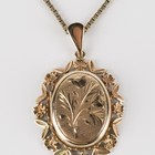 An 18ct gold plain wedding ring, a 9ct gold signet ring and a 9ct gold shaped oval pendant locket with a 9ct gold box link neckchain on a boltring clasp.