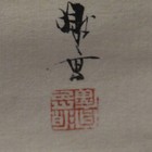 A Japanese hanging scroll painting by Miyake Gogyo (1864-1919), Meiji period, depicting a group of four dancers, black signature and two red seals to lower right corner, 126cm x 36cm, with pine box.