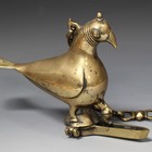 A Indian Mughal polished bronze hanging oil lamp, probably 17th/18th century, in the form of a dove, hung from a link chain and hook, length 24.5cm.