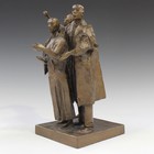 David Backhouse - a mid/late 20th century brown patinated cast bronze figure group of a woman accompanied by two men, raised on a rectangular base bearing cast signature 'Backhouse', height 33cm.