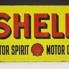A 'Shell Motor Spirit, Motor Oils' double-sided enamelled advertising sign, dated '6/23', height 38cm, length 61cm.