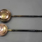 A collection of copper ware, including two coal scuttles, two warming pans fitted with clock movements, a Victorian copper kettle and a W.A.S. Benson copper flagon (faults).