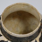An Islamic Kashan pottery jug, probably 12th/13th century, the globular body moulded in relief and painted in dark brown/black with a band of script within banded borders, height 15.5cm (restoration).