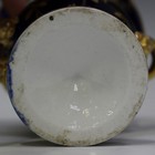 An English porcelain two handled vase, early 19th century, possibly Coalport, of campana urn form, the body painted with a panel of flowers against a foliate gilt decorated cobalt blue ground, flanked by two lion mask handles, raised on a circular foot, height 12.7cm.