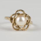 A 9ct gold ring, mounted with a single cultured pearl within a cast loop surround, ring size approx J1/2.