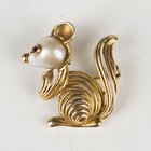 A French gold, cultured pearl and cabochon ruby brooch, designed as a squirrel, width 2.3cm.