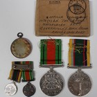 A 1939-45 Defence Medal, a Cadet Forces Medal to 'Major.R.Paddington', the corresponding dress miniature medals and a silver fob medal to 'Lieut R. Paddington 1944', with a box of postage, together with three Second World War awards, comprising 1939-45 Star, Pacific Star and War Medal, with an Army Council forwarding slip and box of postage and a lapel badge, detailed 'For Loyal Service'.
