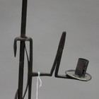 A 17th century style wrought iron floor standing adjustable rush light/candle holder, probably 18th/19th century, raised on a chamfered block support, height 104cm.