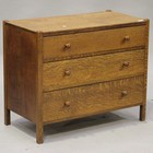 A George V oak chest of three long drawers, on block legs, probably by Heals, height 75cm, width 81cm, depth 48cm.