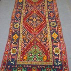 A Persian runner, mid-20th century, the blue field with three lozenge medallions, within a polychrome turtle palmette border, 333cm x 92cm.