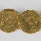 Four French gold Napoleon III five francs, mounted with base metal fittings as a pair of cufflinks.