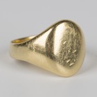 An 18ct gold oval shaped signet ring, detailed '18ct', ring size approx N.