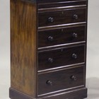 A late Victorian mahogany chest of four long drawers by Johnson & Appleyards Ltd, Sheffield, fitted with turned handles and raised on a plinth base, height 107cm, width 69cm, depth 48.5cm.