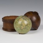 A mid-Victorian Malby's terrestrial pocket globe, the printed gores bearing maker's marks 'Malby's Terrestrial Globe ... 37, Parker Street, London 1878', diameter 7.6cm, housed within a mahogany domed box (faults to box).