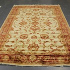 A modern machine made Ziegler style carpet, the cream field with overall palmettes and curling tendrils, within a red border, 280cm x 200cm.