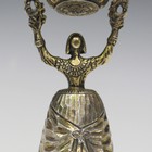 A George V silver wager cup, modelled as a lady with arms aloft supporting a foliate decorated swing cup, London 1936 by Birch & Gaydon, height 13cm.
