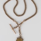 A 9ct gold uniform curblink watch Albert chain, fitted with two 9ct gold swivels, a 9ct gold T-bar and with a gold mounted South Africa one pond 1898, total length 49.5cm.