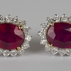 A pair of 18ct white gold, ruby and diamond oval cluster earrings, each claw set with an oval cut ruby within a surround of circular cut diamonds, with post and butterfly fittings, detailed '750', length 1.3cm, total ruby weight approx 5.40ct, total diamond weight approx 0.80ct.