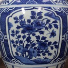 A Chinese blue and white porcelain jar, Ming style but 20th century, of stout ovoid form, painted with panels of flowering shrubs within trellis borders, height 37cm.