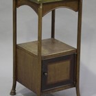 A late 19th/early 20th century French tole painted tin bedside cabinet with an inset rouge marble top above a cupboard, on outswept feet, height 77cm, width 39cm, depth 35cm.
