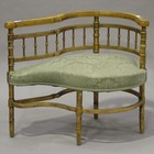 An early 20th century French gilt painted salon chair, the shaped back on turned supports above an overstuffed seat, on turned legs, height 65cm, width 78cm.