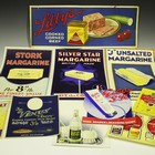 An early 20th century printed advertising poster for Stork Margarine, 38cm x 25.5cm, two similar posters for Silver Star Margarine and 'J' Unsalted Margarine and a quantity of other printed advertising, all attributed to A.E. Ager.
